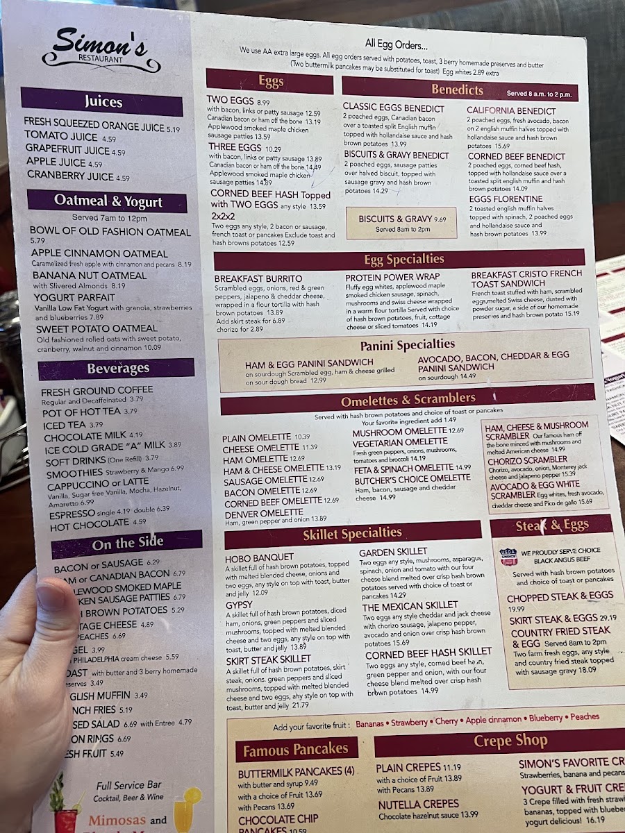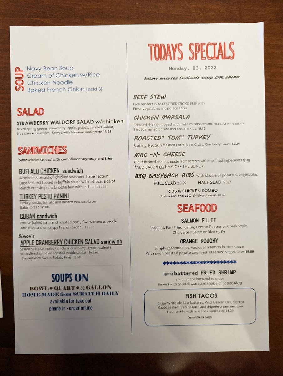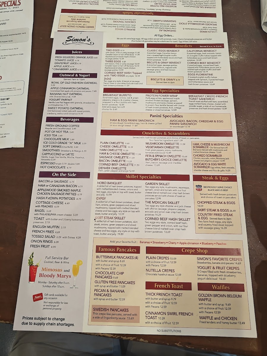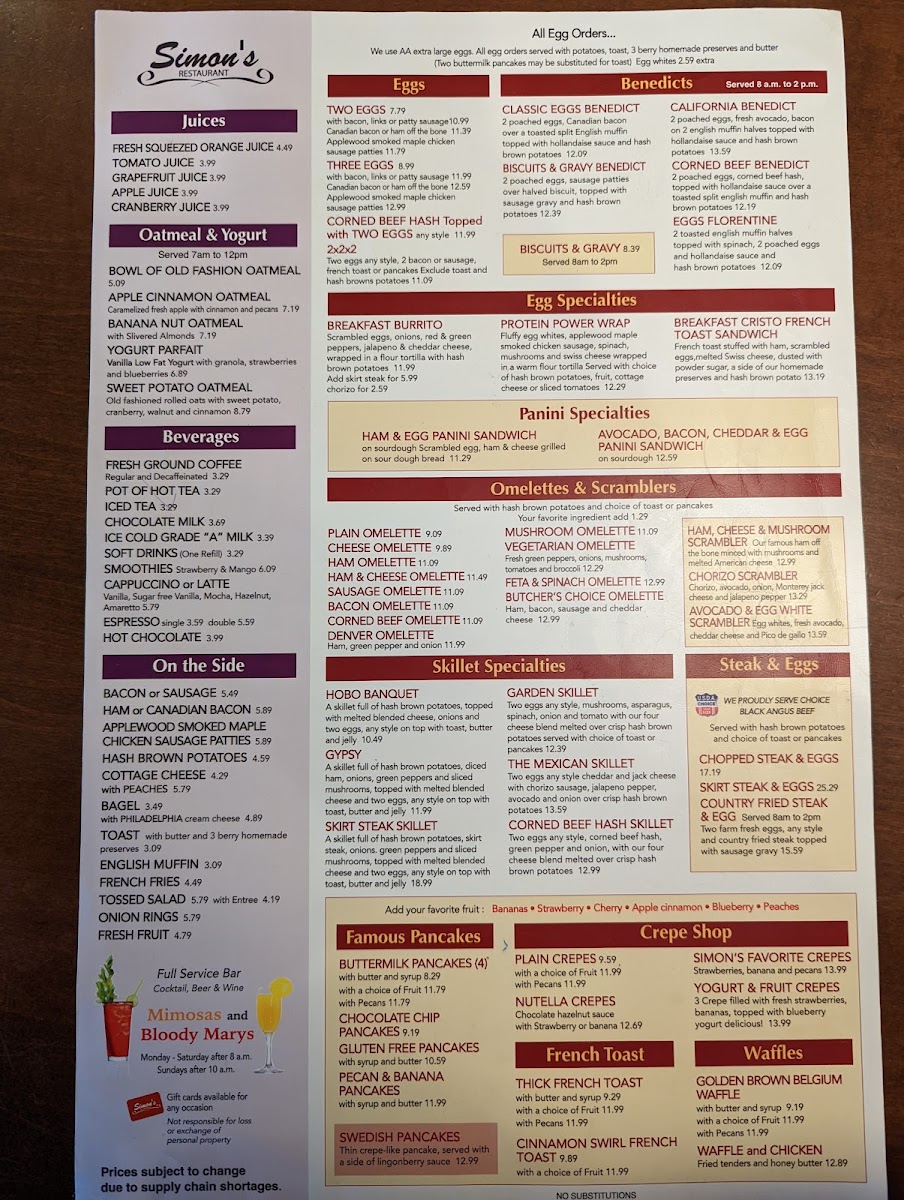 At Simon's Restaurant Menu, you'll find a delightful mix of comforting classics and bold, innovative dishes, all served with a side of genuine hospitality. Located at 2 Roosevelt Rd, Villa Park, IL, this spot is perfect for anyone craving a satisfying meal, whether you're in the mood for something light or a heartier option. From fresh salads and hearty soups to mouthwatering burgers and signature entrees, every dish is crafted with the finest ingredients. For those with a sweet tooth, don't miss out on the indulgent desserts, made to end your meal on a perfect note. The menu features a variety of options to please every palate, ensuring that every visit is a memorable one. Whether you're stopping by for a casual lunch or a cozy dinner, Simon's offers something for everyone.